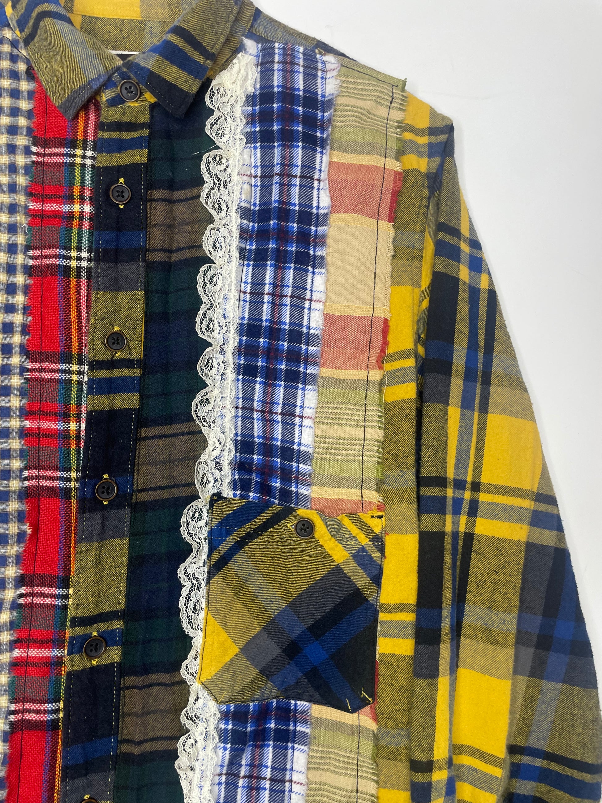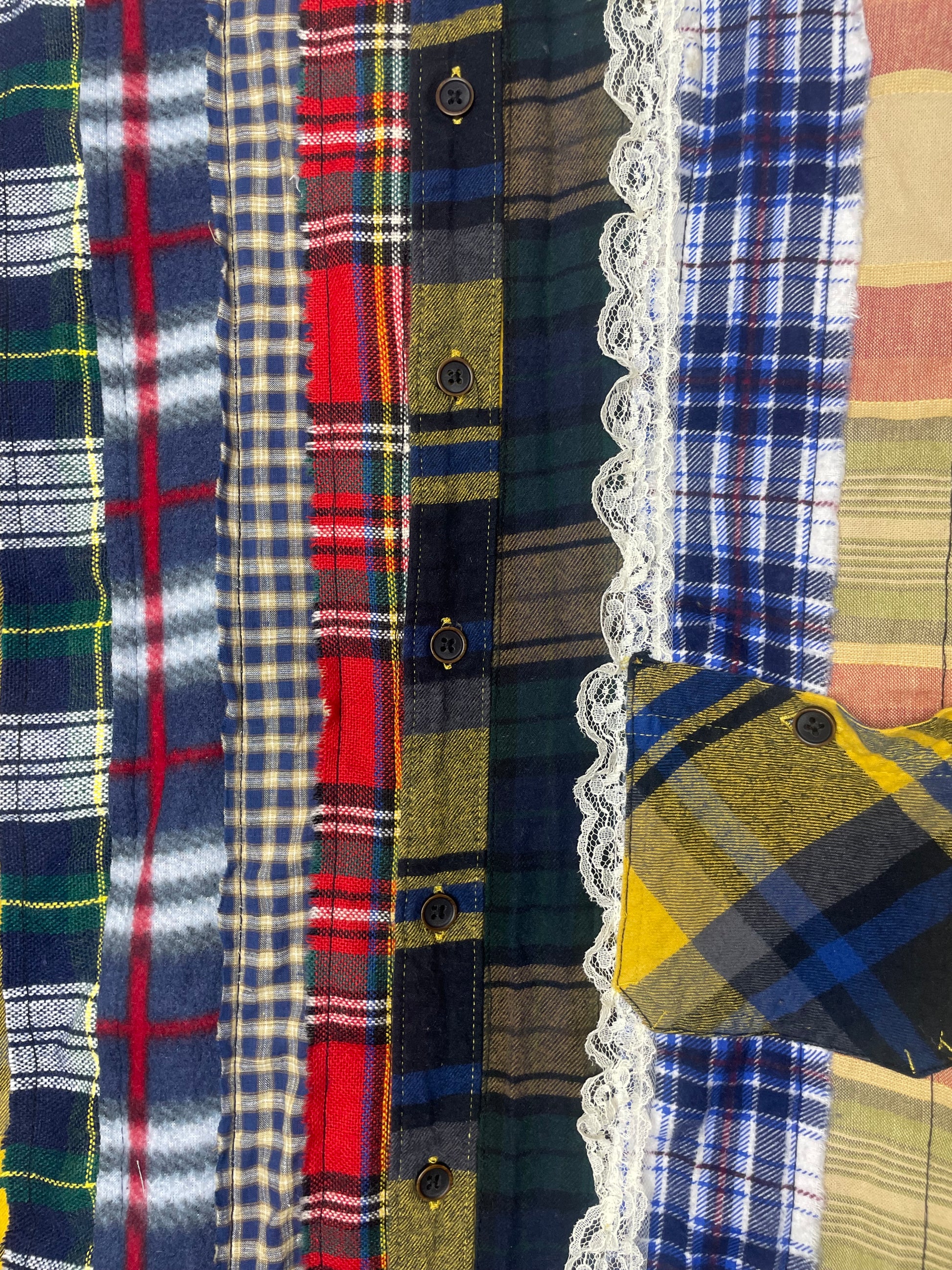 A patchwrk flannel cut from mixed vintage cottons, each piece carries fragments of past lives reworked for breathability and style. Every stitch preserves history while creating something new — a one-of-one layer with soul.