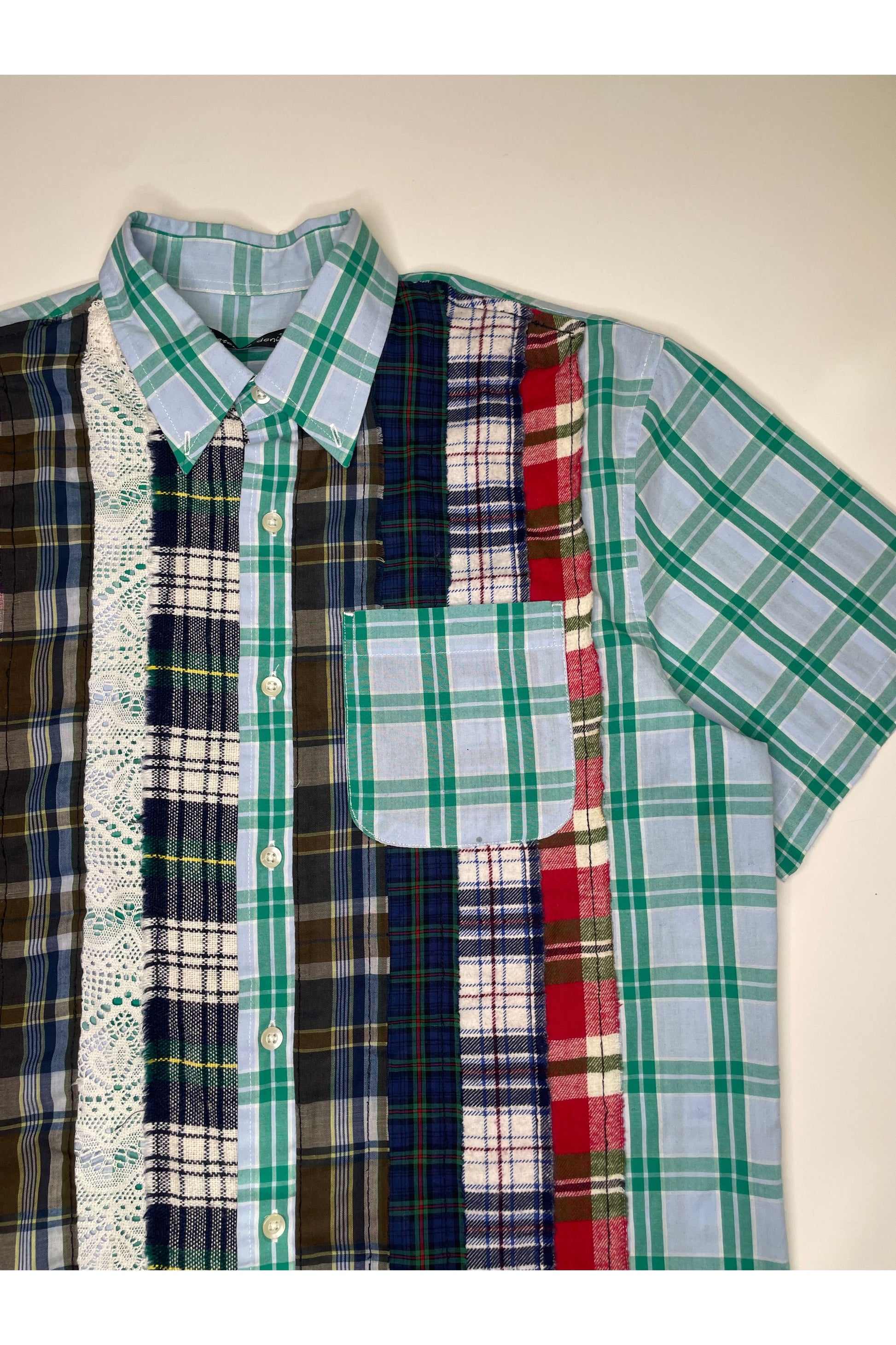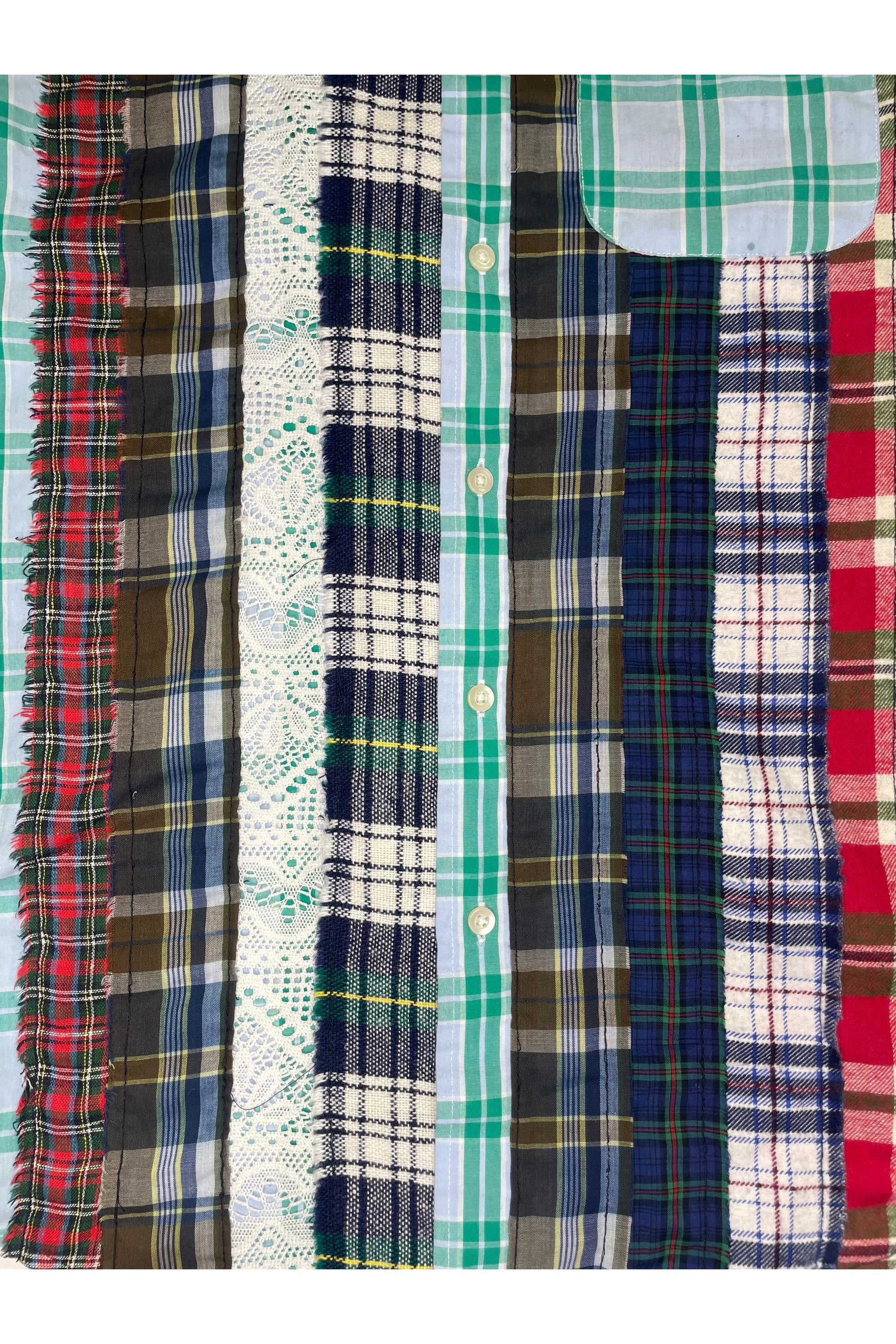 A patchwrk flannel cut from mixed vintage cottons, each piece carries fragments of past lives reworked for breathability and style. Every stitch preserves history while creating something new — a one-of-one layer with soul.